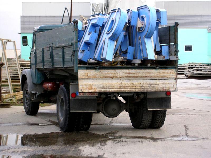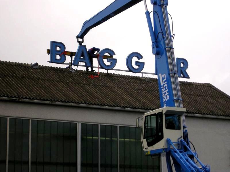 25.09.2004 - Ein weithin sichtbares Wahrzeichen in Bad Schönborn muss weichen. Der Fuchs-Schriftzug auf dem Werksdach kündigte vielen Berufspendlern mit der Bahn den heimatlichen Bahnhof an. Das liebgewonnene Wahrzeichen wurde von unseren Mitgliedern demontiert und zunächst in der Halle eingelagert. Mittlerweile leuchtet dieser in unserer großen Halle über den alten Fuchs-Maschinen