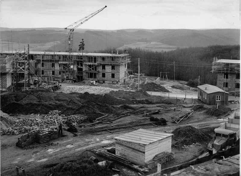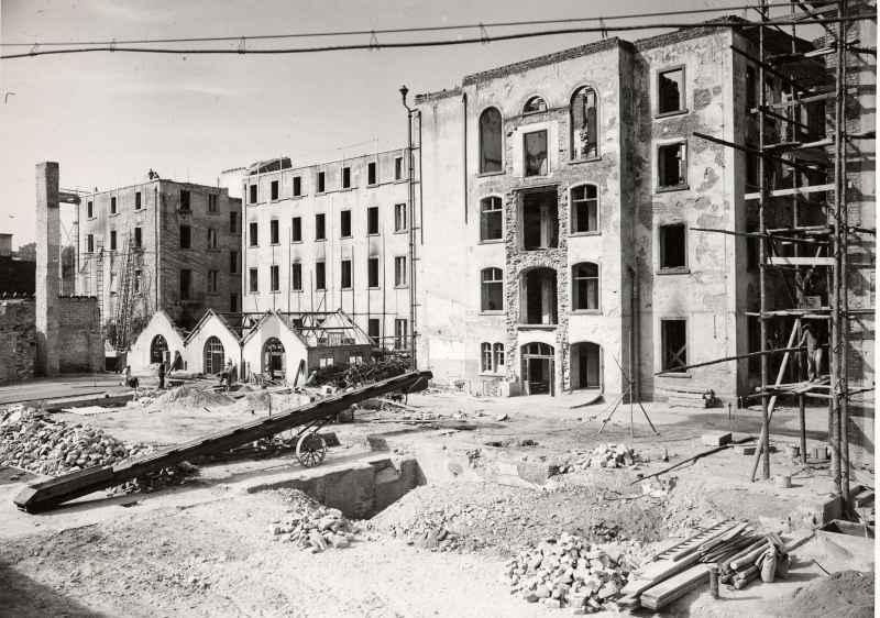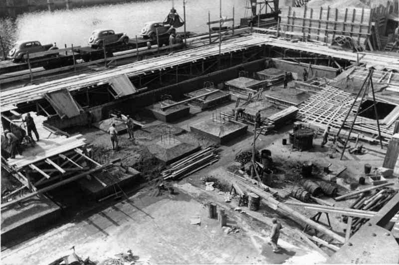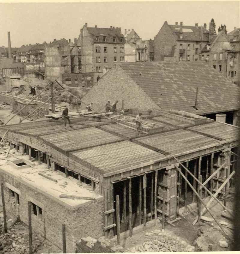 Die Firma Füssler war eine alt eingesessene Karlsruher Baufirma. Mit deren Insolvenz verschwand auch viel Dokumentation. Ein Foto-Album konnten wir noch rechtzeitig übernehmen. Darin sind viele Baustellen aus der Nachkriegszeit. Sehr interessant ist der Wiederaufbau der Bundesbahndirektion in der Lammstraße in Karlsruhe dokumentiert.