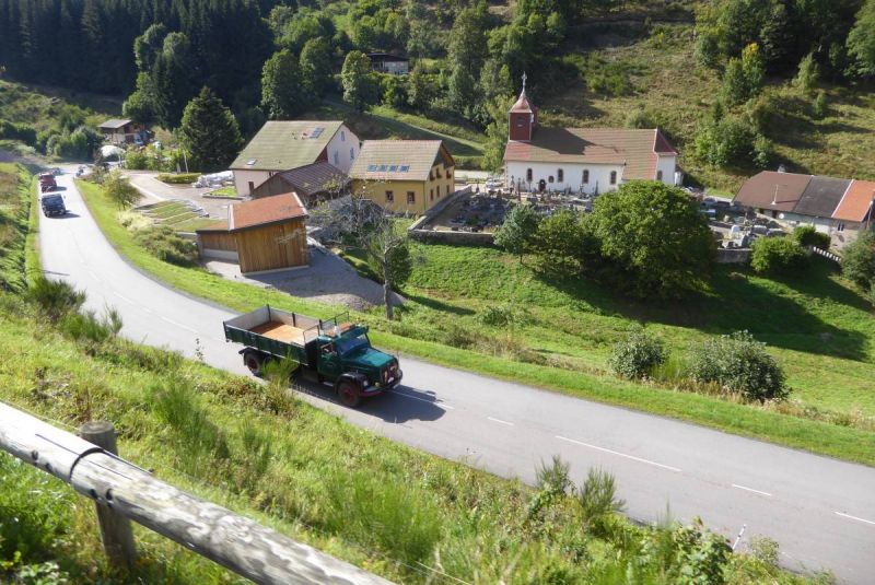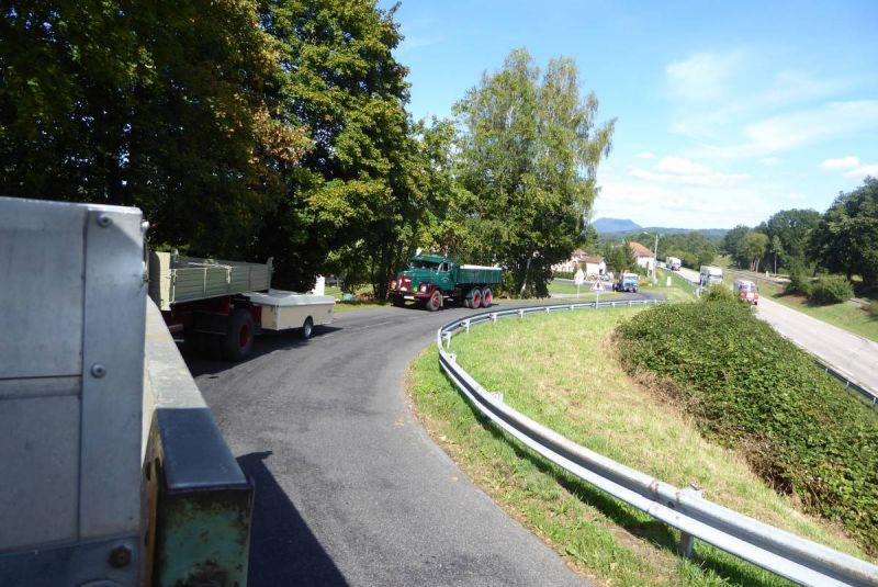 Anschließen ging es auf Tour durch die Vogesen. Nach der ersten Etappe von ca. 40km wurde auf dem ersten Pass das Mittagessen eingenommen. Danach waren unsere Lkw gefordert. Fast 100km ging es über die Vogesen bis nach Vomecourt in Lothringen. Zwei weitere Pässe waren zu überqueren. Am Nachmittag trafen wir dann auf dem Platz in Vomecourt ein. Nach und nach trafen auch die anderen Gruppen ein und am Abend standen 104 Lkw auf dem Platz. Nun begann die schon traditionelle Abendveranstaltung mit Flammkuchen und Dieselgesprächen. Tortz der hohen Teilnehmerzahl war das Ganze noch sehr familiär.