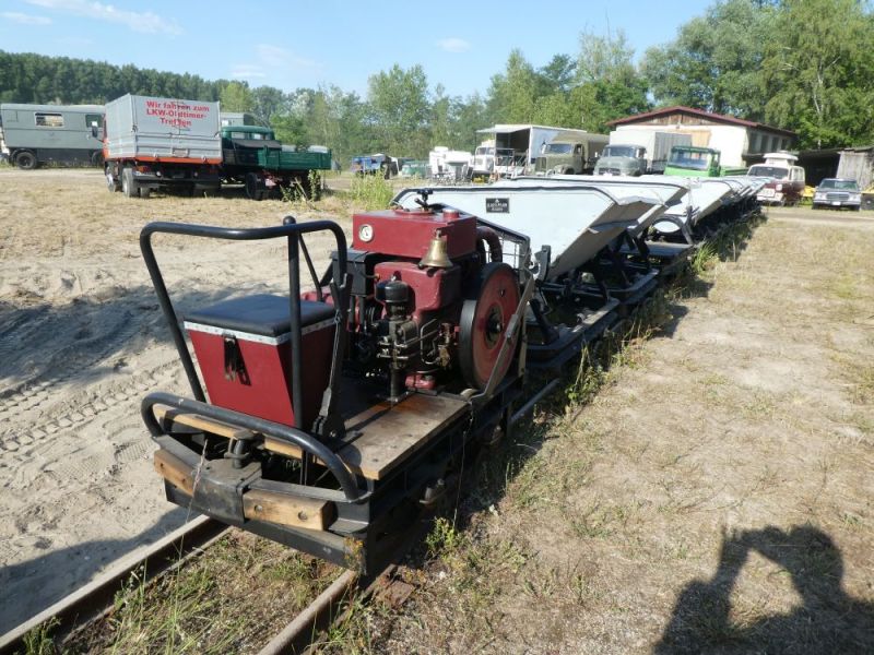 Die erste Ausfahrt in diesem Jahr führte in die Pfalz. Zunächst nach Bad Dürkheim, dort lag noch eine Tieflöffeleinrichtung für einen Fuchs 301, dann ging es nach Bad Kreuznach um noch einen Restbestand an Kipploren abzuholen. Nach der "Bäder-Tour" kam dann ein vollbeladener Zug auf dem Gelände an.